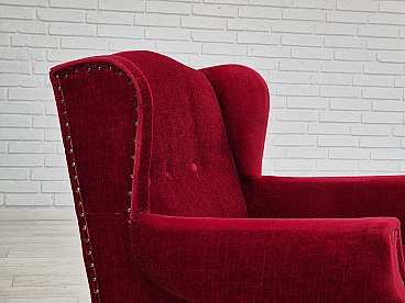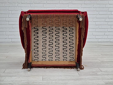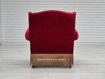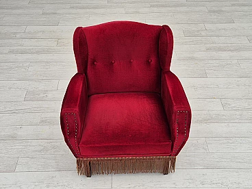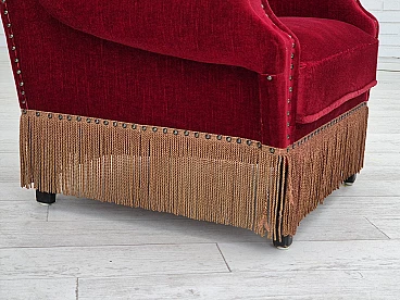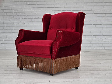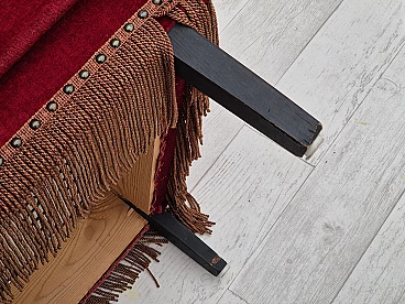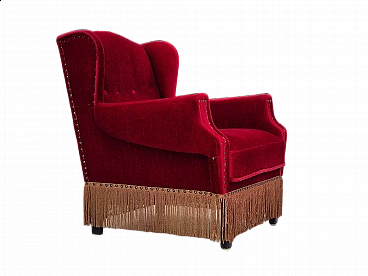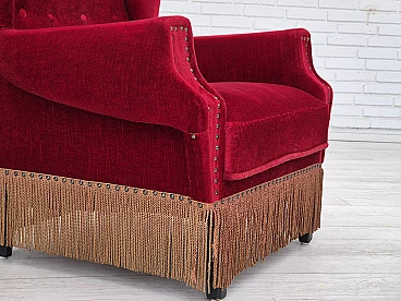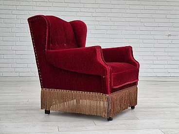 Danish oak and velvet armchair with tassels, 1960s