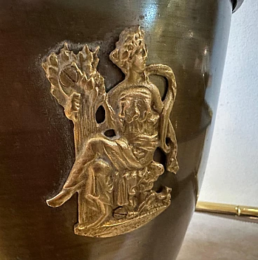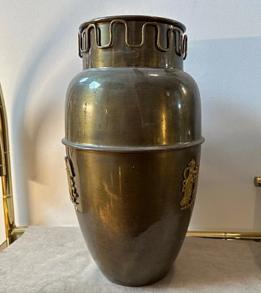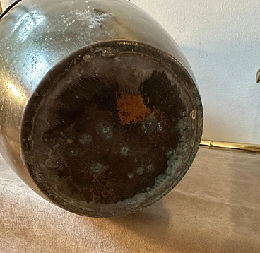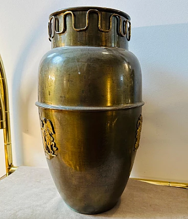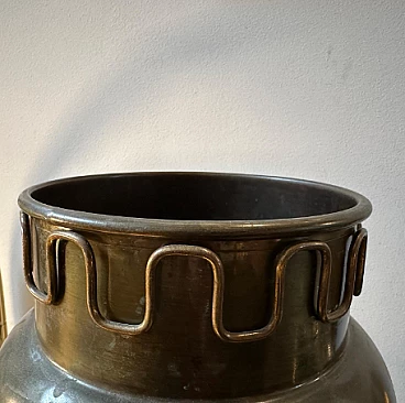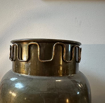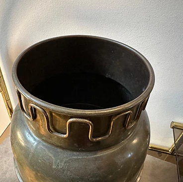 Brass umbrella stand in the style of Gio Ponti, 1950s. It is an elegant and collectible piece. Brass was a very popular material for Mid-Century design and gives an elegant, timeless look. The original patina and condition of the brass gives this umbrella stand a superb vintage look. The high-quality craftsmanship and attention to detail are typical of mid-century Italian pieces. Gio Ponti was a renowned Italian architect and designer known for his contributions to the Mid-Century movement and his work continues to be highly prized and sought after by collectors. The umbrella stand has small signs of use and age visible in the photos.