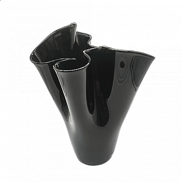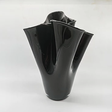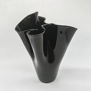 Jacketed handkerchief vase in black Murano glass, 1960s