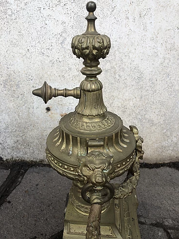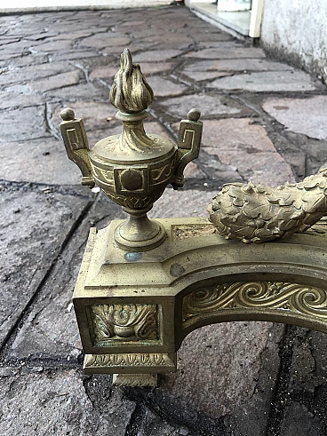 Pair of iron and gilded bronze fireplace andirons, 19th century