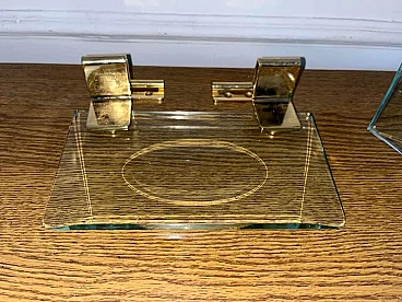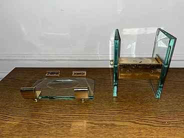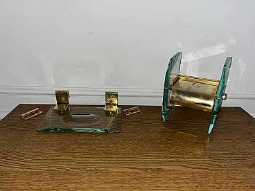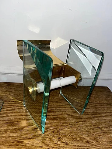 Soap and toilet paper holder in glass and brass by Fontana Arte, 1940s