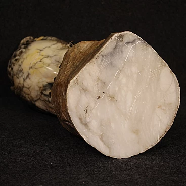 Splendid Italian sculpture from the mid-20th century. Finely chiselled and patinated alabaster work depicting a majestic Eagle with painted glass eyes. A fabulous item for antique dealers, interior decorators and collectors of sculptures depicting animals. Finished centrepiece sculpture, of considerable weight (given the material used) ideal for display above a desk or chest of drawers. Work in beautiful patina with minor signs of ageing. Structurally sound, overall in good state of preservation.