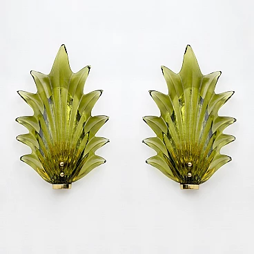 Pair of leaf wall lights in the style of Barovier & Toso, 1980s