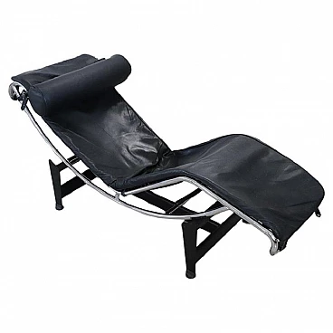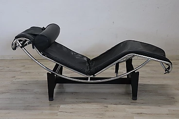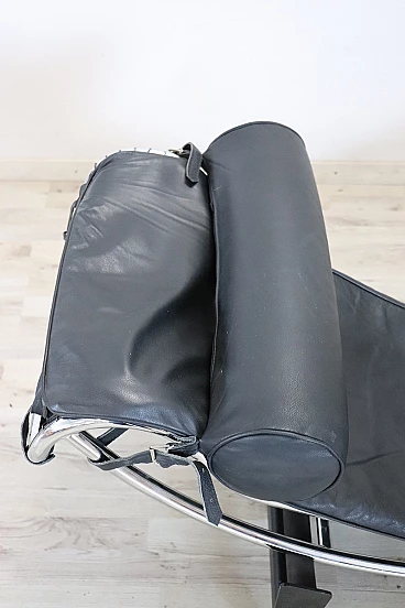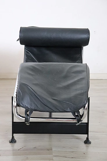 Black leather chaise longue in the style of Le Corbusier, 1980s
