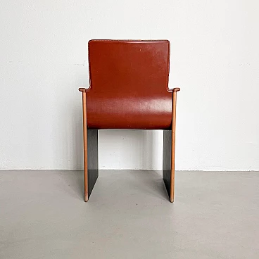 Segesta armchair by Afra and Tobia Scarpa for Stildomus, 1970s. Four pieces available (price per single armchair). Designed in 1976 and part of the "Torcello" series, consisting of high and low chairs, tables, bookcases and cabinets. These four armchairs with Italian walnut legs and one-piece seat entirely covered with fine tobacco leather are preserved in pristine condition. Segesta armchairs are already very rare, but these are even rarer because of the matt black finish of the legs, in contrast to the natural veneer commonly used. They have a timeless design and are very comfortable. Signs of age are minimal and all four are perfectly balanced with even legs. Seat height: 45 cm.