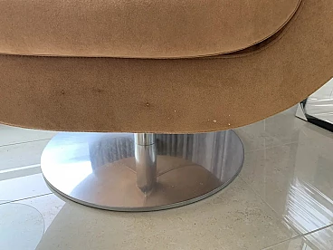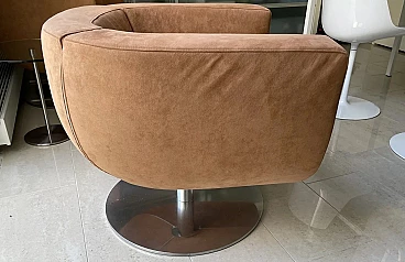 B&B Italia 2 swivel Tulip armchairs in Alcantara MAXALTO-Beige design Jeffrey Bernett. Set of 2 360 degree swivel TULIP armchairs with circular support base, spherical monocoque shell in cold-molded polyurethane with soft Alcantara MAXALTO Sand-Beige upholstery. Work by the great architect Jeffrey Bernett, a 2008 project. Line with multiple flexibility of use produced by B&B Italia. Two vertical cuts engraved in the backrest and a soft seat cushion make it very welcoming and comfortable for daily relaxation. Very good conditions. Minimal signs of use, barely visible. One seat has small stains (spots) on the lower edge (see photo 6). Small white spots on the bottom edge of 1 chair. Not visible from afar. For the rest they are OK. List price of the new Alcantara armchair is 3450 euros. List price of the pair in alcantara 6900. Measurements width 80 cm; depth 77 cm; height 67 cm; seat height 44 cm. Economic request for the two armchairs 2795 euros.