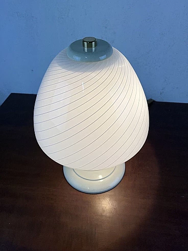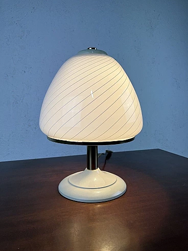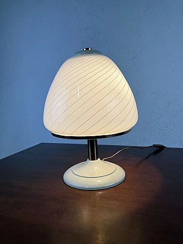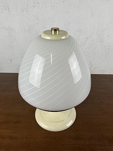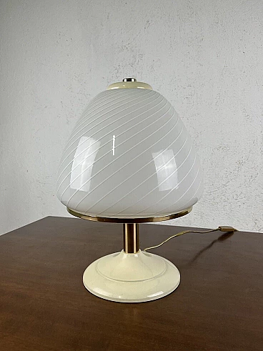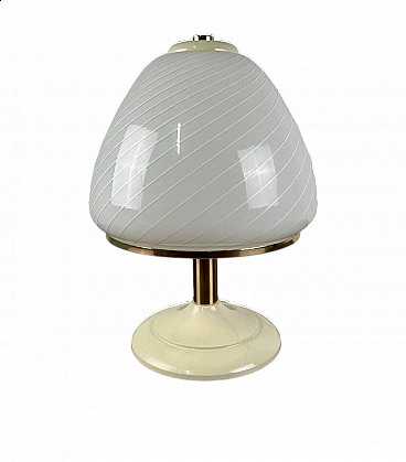 Varnished metal, glass and brass table lamp, 1970s