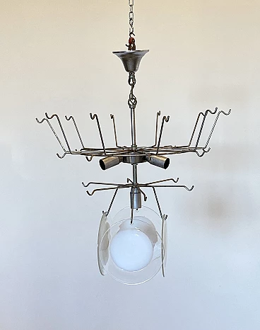 Chandelier in iron, steel and glass by Vistosi, 1960s