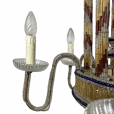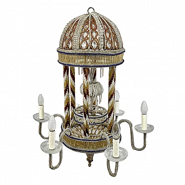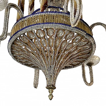 Pavilion-shaped ceiling lamp in Murano glass and metal, 1940s