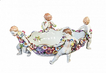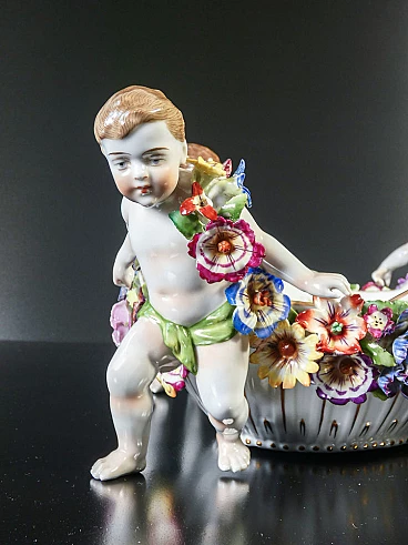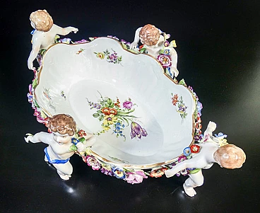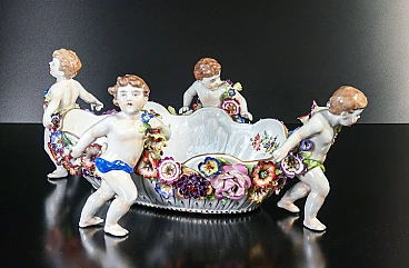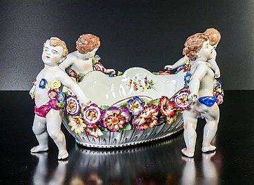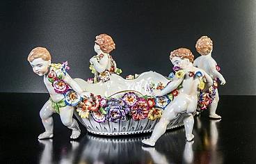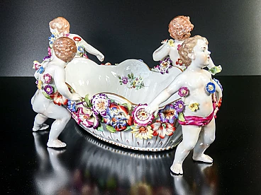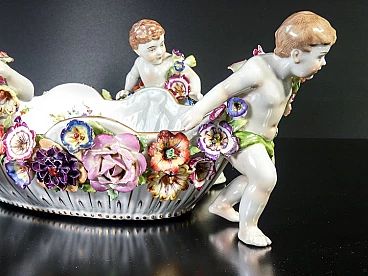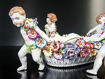 Schierholz Plaue centerpiece vase (Germany), early 20th century. Made of porcelain hand-modeled and hand-painted with cherubs and flowers. It is in very good condition, as can be seen from the attached photos. There are some small flaws and repairs, very difficult to notice in context.