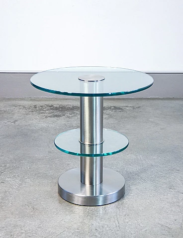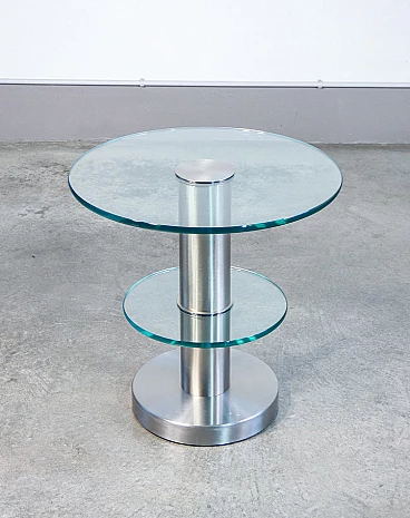 Coffee table mod. 1932 by Gio Ponti for Fontana Arte, 1930s. 15 mm thick float glass disks, nickel-plated and brushed brass structure. It is in perfect condition, as can be seen from the attached photos; ready to use.