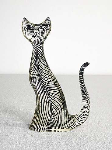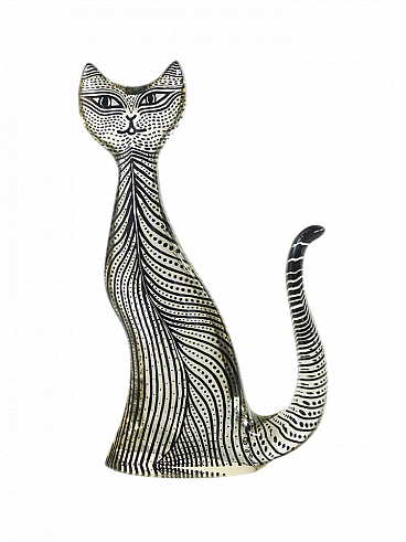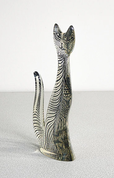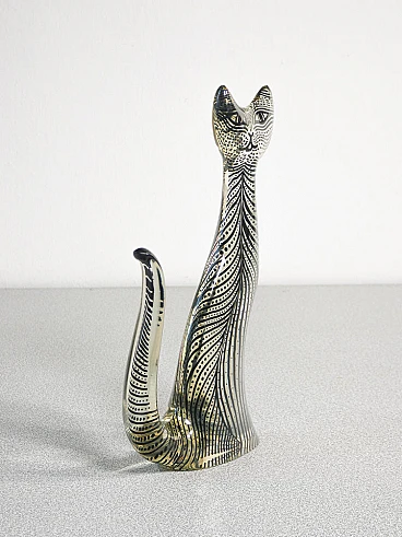 Plexiglass cat sculpture made in Brazil by Abraham Palatnik, 1970s. Abraham Palatnik, born in 1928 in Natal, Brazil, and deceased in 2020 in Rio de Janeiro, was a pioneering Brazilian artist, celebrated for his significant contributions to kinetic and optical art. His training in physics and mechanics, acquired in Tel Aviv, and interest in technology, movement and light guided his artistic exploration, fusing art and science in revolutionary ways. Famously known for his "Aparelhos Cinecromáticos" (Cinecromatic Devices), he debuted at the 1st São Paulo Biennial in 1951, where he received an honorable mention despite his work not fitting into traditional artistic categories. These devices, boxes lit from within with moving bulbs, created dynamic color fields through translucent fabrics, ushering in a new way of perceiving art. Palatnik's career, spanning seven decades, has seen the creation of works that exploit the relationship between art and technology, with a particular focus on kinetic and optical effects. His series of "progressions" and "kinetic objects", using materials such as wood, cardboard and acrylic, reflect a deep interest in rhythmic patterns and movement. Palatnik has participated in numerous international exhibitions and his works are present in prestigious collections such as the MoMA in New York and the MAM-SP in São Paulo. His passing due to COVID-19 marked the end of an era for Brazilian technological art, leaving a legacy of innovation and experimentation.