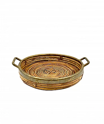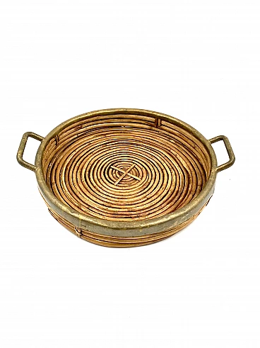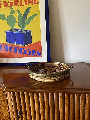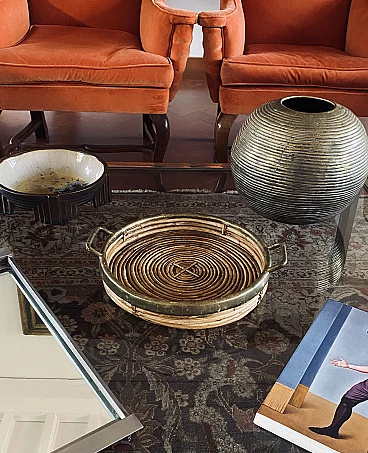 Brass and wicker centerpiece in the style of G. Crespi, 1970s