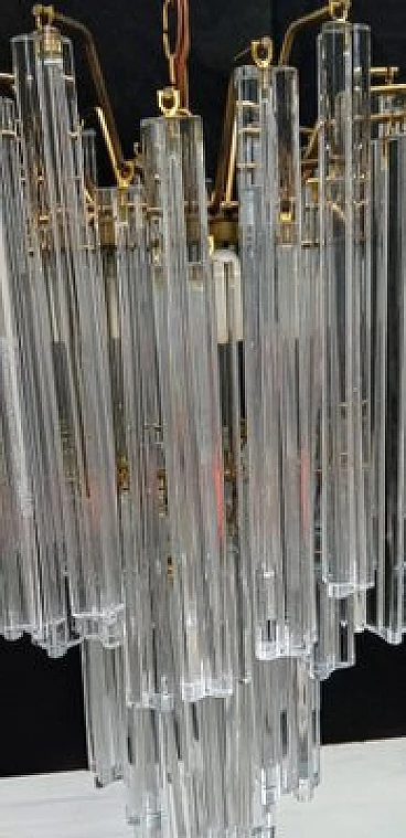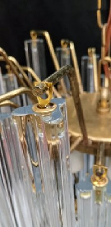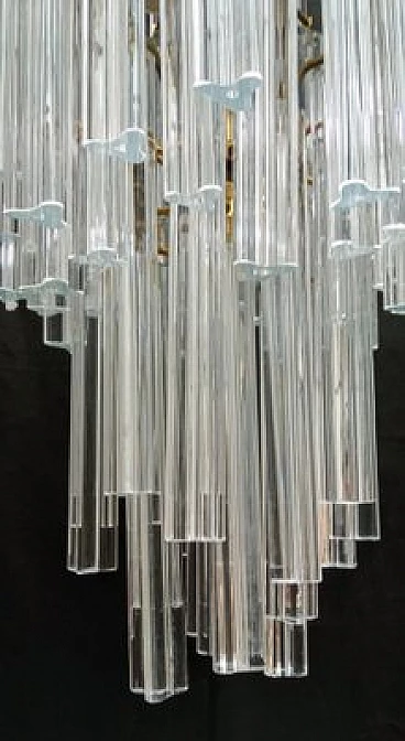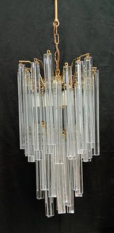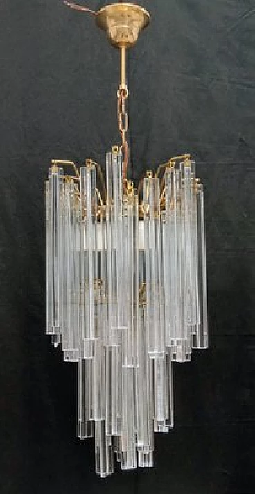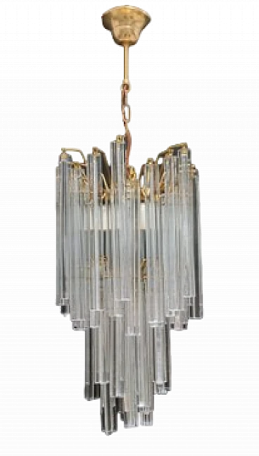 Chandelier by VeArt, 1960s. Hand-blown and handcrafted transparent Murano glass in long trilobed elements. Light bronze chrome-plated metal structure. It features three lights with E27 lamp holders suitable for LED or filament bulbs. Electrical system checked and working.