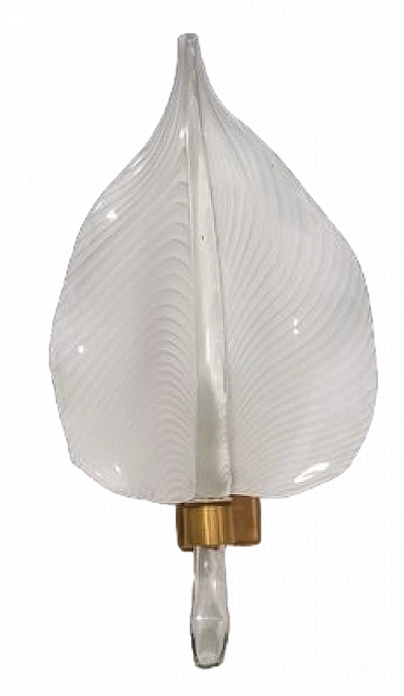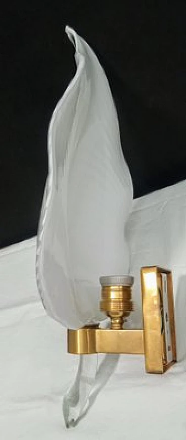 Murano glass and brass leaf wall light by Franco Luce, 1970s