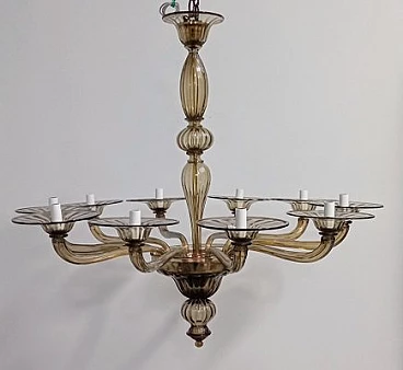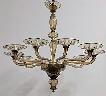 Amber smoked Murano glass chandelier by Cappellin, 1970s