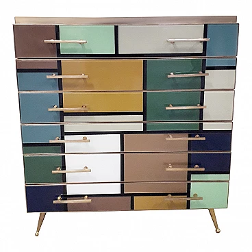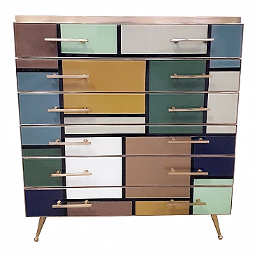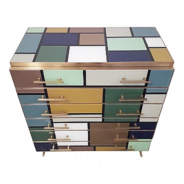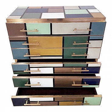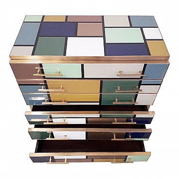Mondrian-style multicoloured glass chest of drawers, 1980s