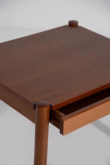 Square wooden coffee table with drawer by Eugenio Gerli for Borsani, 1950s-60s. In the world of furniture, some pieces stand out not only for their functionality but also for their timeless beauty; this coffee table by Gerli is one such masterpiece. Crafted with precision and attention to detail, this coffee table is more than just a piece of furniture; it is a work of art that adds elegance and sophistication to any living space. To truly appreciate it we must first understand the context in which it was created. The 1950s marked a period of innovation and creativity in the design world. With the end of World War II, there was a renewed sense of optimism and desire for progress. Designers such as Eugenio Gerli embraced this spirit of renewal, pushing the boundaries of traditional design and experimenting with new materials and forms. What sets this coffee table apart is its eye-catching design: the table's geometric shapes and clean lines wink at the modernist movement of the 1950s-60s, while the use of light wood creates a mesmerizing play of light and shadow. It is an attention-grabbing piece that yet blends seamlessly with its surroundings. Although the square coffee table is undeniably elegant, it is also highly functional: the pull-out drawer provides ample space to store magazines, remote controls and other living room essentials while keeping the top clear. It is a perfect marriage of form and function, making it ideal for everyday living.