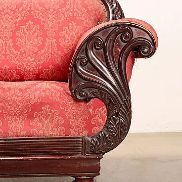 Carved mahogany sofa with pink brocade fabric, 19th century