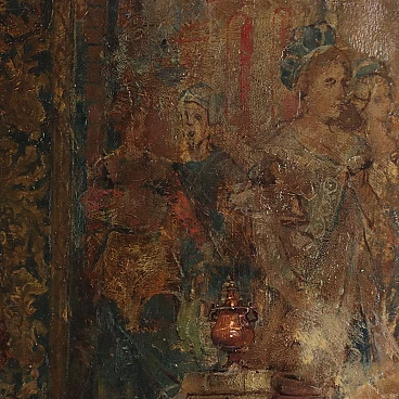 The label refers to the French collector Joseph Spiridon (1845 -1930), who dedicated himself to continuing the collection of works of art already begun by his father Georges, purchasing them in Italy from Cardinal Fesch, the prelate stationed in Rome who was his once an important art collector. The location of the painting in Rome corresponds to the long period that the Valencian artist Vicente March spent in the capital, where he had arrived while still young to further his artistic training. March stood out in particular for his paintings of folkloric subjects and genre scenes, a follower of costumbrismo, the Spanish artistic-literary movement that took inspiration from the costumes and scenes of popular life. His works achieved widespread success throughout Europe, ending up in numerous private collections.