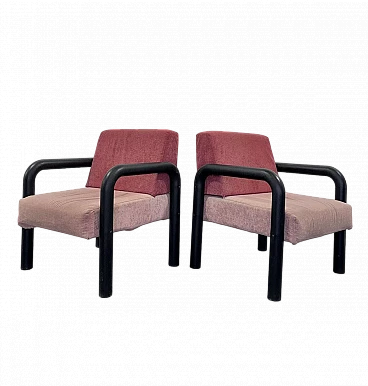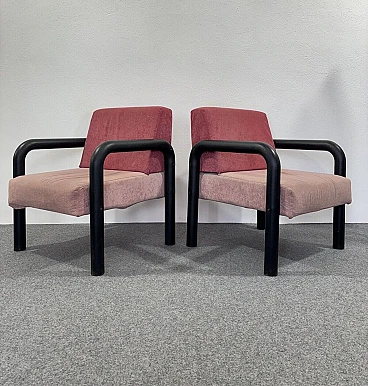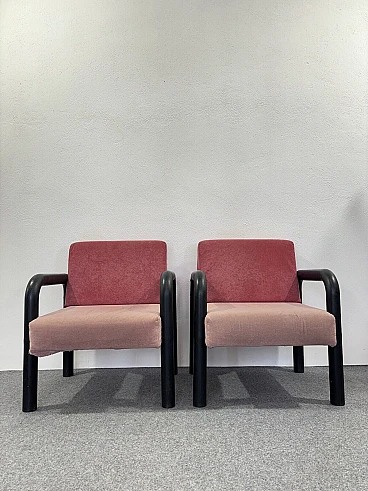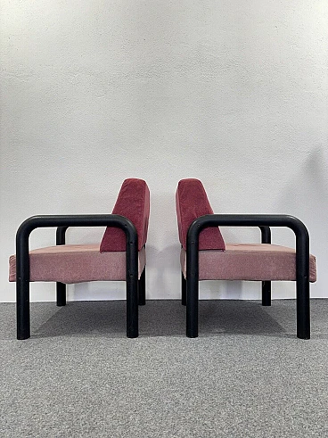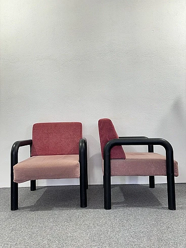 Pair of expanded polyurethane and pink fabric armchairs, 1980s