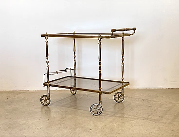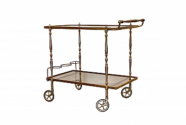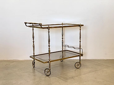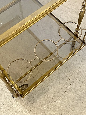1960s bar cart, brass and glass tops (oxidation of brass), height at top 64 cm.