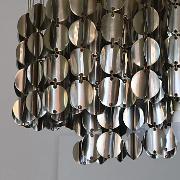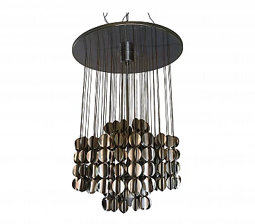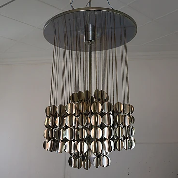 Transform your space into a journey back in time with this charming vintage chandelier from the 70s, an expression of style and design that reflects the golden age of retro taste. Carefully crafted from steel and expertly produced in Italy, this chandelier embodies the essence of Italian craftsmanship and the bold aesthetic of the 1970s. With a height of 90 cm and a diameter of 66 cm, this chandelier does not go unnoticed, dominating the space with its imposing and refined presence. The clean lines and minimalist details lend a timeless elegance, while the vintage accent adds a touch of character and charm to your home. The characteristics of the steel make this chandelier not only a piece of furniture, but also a functional work of art that gives off a soft and enveloping light. The quality of Made in Italy production is reflected in every curve and finish, giving the chandelier unparalleled durability and beauty. Whether you place it above a dining table, in a living room or in an entry hall, this vintage 1970s chandelier will add a touch of retro glamor and sophistication to your home. Celebrate the past and illuminate the present with this elegant icon of made in Italy style, a piece that will be admired and appreciated for many years to come.