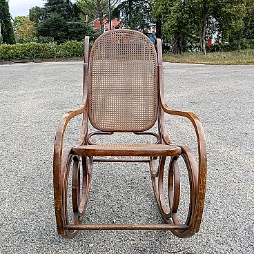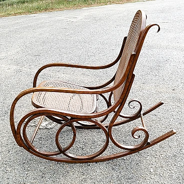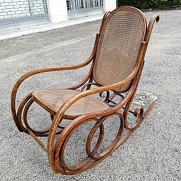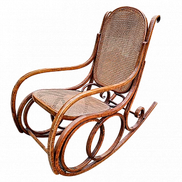 Bent wood and wicker rocking chair by Thonet