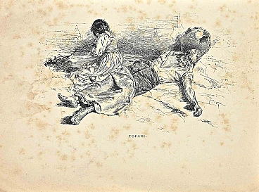 The Deep Rest is an original lithograph on paper, realized in the late 19 century by Osvaldo Tofani.Signed in the plate on the lower margin.In good conditions, with diffused foxing.The artwork represented through deft strokes, the relaxing feeling expressed through perfect drawing of two figures and well-defined hatching.The Deep Rest is an original lithograph on paper, realized in the late 19 century by Tofany.