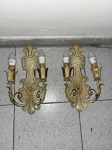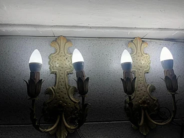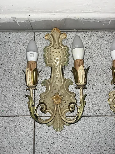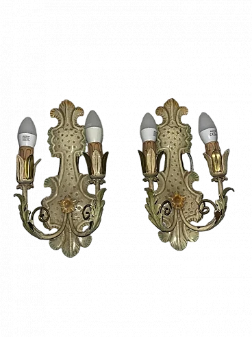 Pair of Venetian style metal wall lights, 1950s