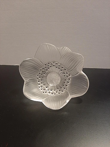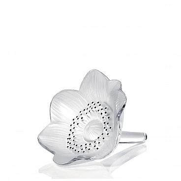 Crystal Anemone sculpture by Lalique (France), 1980s. This elegant crystal object, made in typical Lalique style, adds a touch of nature-inspired elegance to the home. Acid-etched signature on the base.