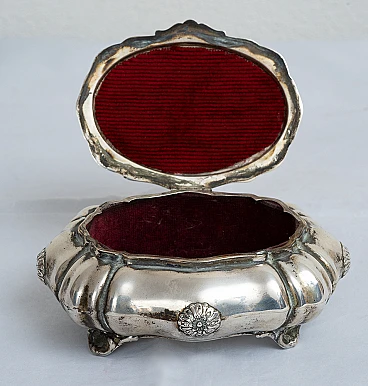 Description: Neapolitan silver jewelry box from the early 20th century.