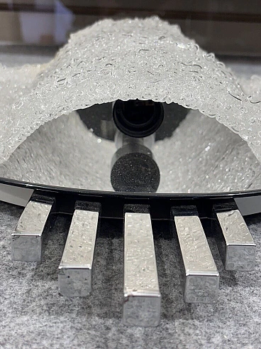 Wall light by Angelo Brotto for Esperia, 1970s. Two light points. Structure in excellent conservation conditions, glass with traces of wear and glue (see photos). In any case it is a wonderful piece that will make the wall unique.