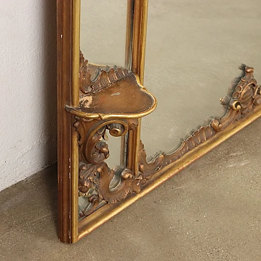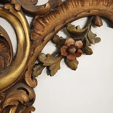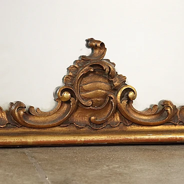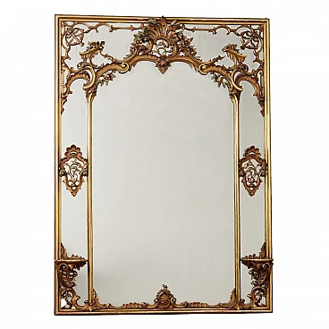 Large period mirror, with frame carved with baroque-style motifs, gilded and partially lacquered.