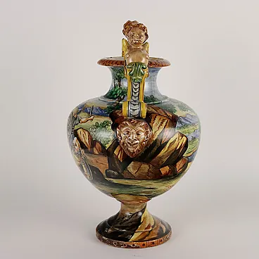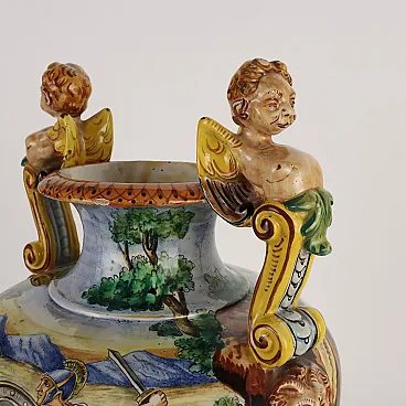 Painted majolica vase with winged figures and masks