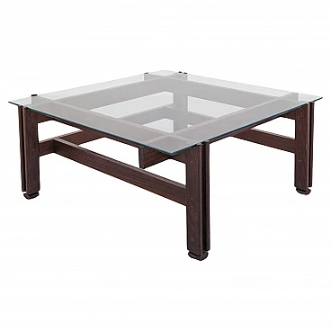 A square coffee table nr 751 designed by Ico Parisi and produced by Cassina is labelled cassina and shows normal signs of use and age on the wood and glass. It is a classic example of mid-century modern furniture design, renowned for its sleek lines, minimalist aesthetic and functional elegance, combining both form and function to create a piece that remains relevant and desirable decades after its creation. Ico Parisi was an Italian architect and designer who played a significant role in shaping the landscape of modern furniture during the mid-20th century. His designs often embodied the principles of form following function, with an emphasis on simplicity and clean lines. Cassina, the Italian furniture manufacturer, is renowned for its collaborations with leading designers and its commitment to craftsmanship and innovation. The collaboration between Ico Parisi and Cassina has resulted in iconic pieces that have become sought-after collectors' items. Its square shape offers versatility in placement within a living space, while its understated design allows it to integrate with a variety of interior styles.