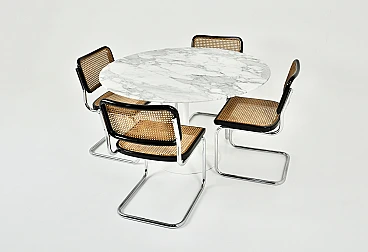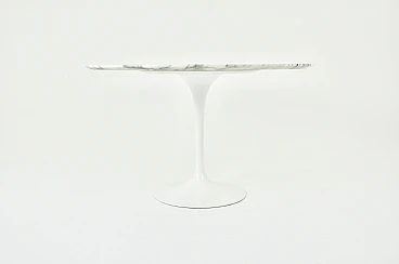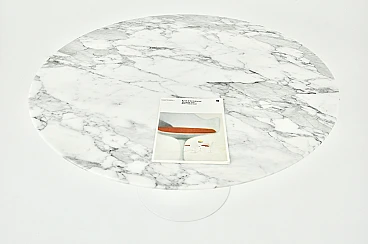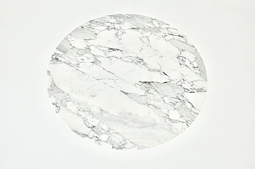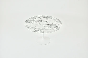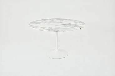 Round table by Eero Saarinen for Knoll International, 1960s. Marble top and aluminum base. Wear due to time and age.