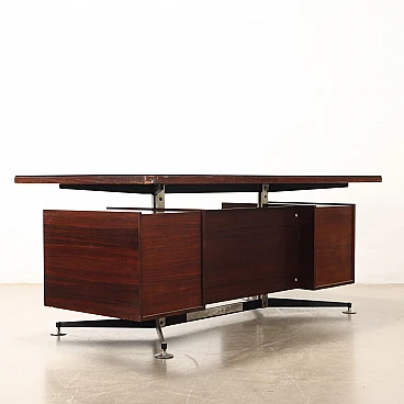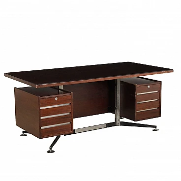 Desk with double column of drawers, chromed and enamelled metal structure, top in exotic wood veneer. 1960s-1970s.