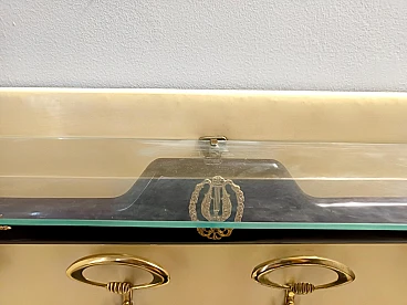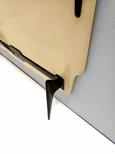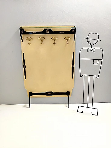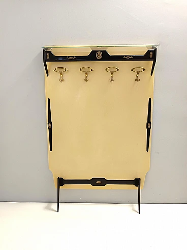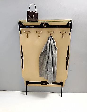 Coat stand in ebonised beech, brass, skai and glass, 1950s