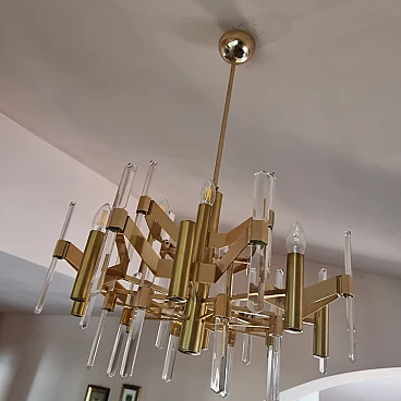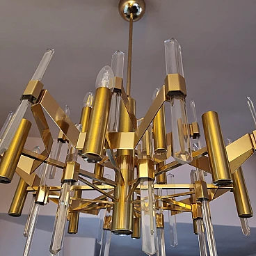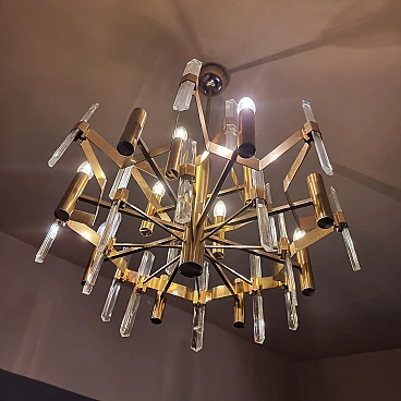 Brass & crystal chandelier by Gaetano Sciola, 1960s