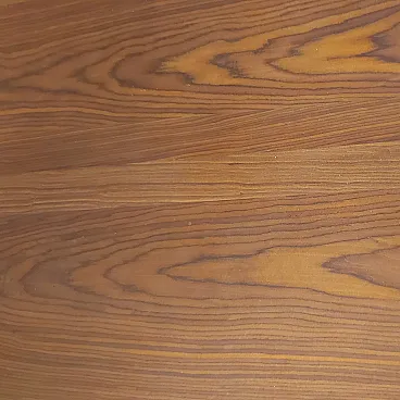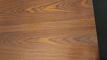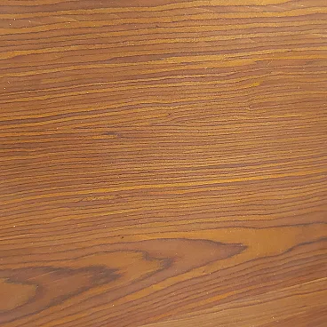 Dining table, 1980s-90s. Characterized by a refined and essential design, with its trapezoidal base made up of four black lacquered legs with brass tips, it stands out for its lightness and modernity. A real single span bridge, on which rests a rosewood surface with a tapered shape which accentuates its aerodynamics.