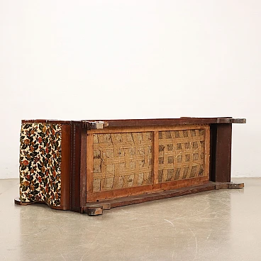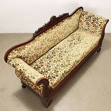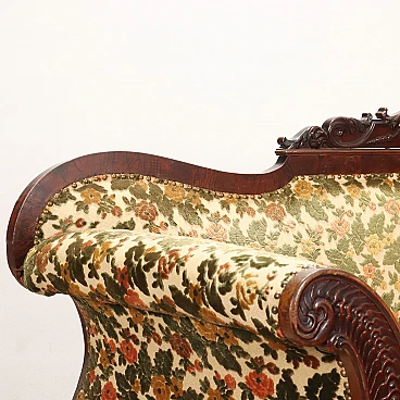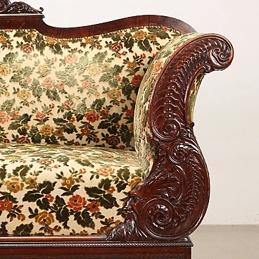 Mahogany sofa with carved leaf motifs and floral fabric, 19th century