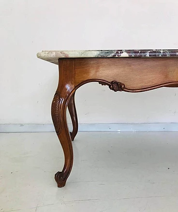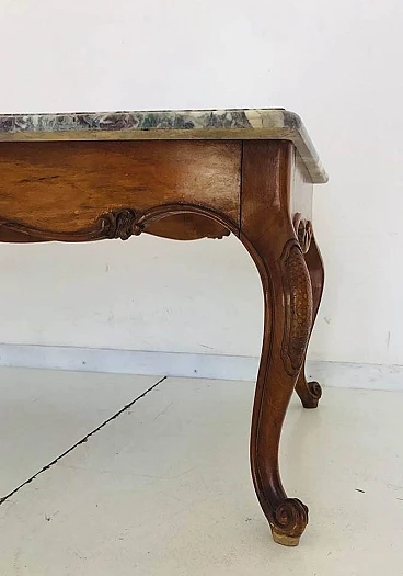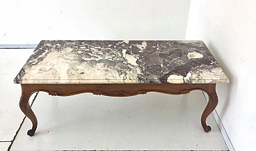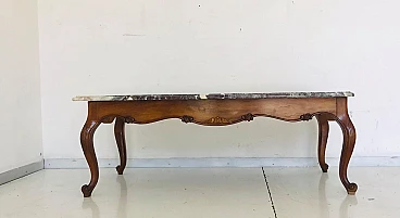 Chippendale style coffee table. Marble shelf. Inlaid wooden structure of medium-high workmanship. Very good general conditions.
