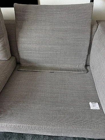 Andersen sofa by Rodolfo Dordoni for Minotti. Kept with extreme care, excellent condition. Covered with soft Arson col.04 silver (beige/grey) fabric with extreme aesthetic and tactile refinement. Seat cushion upholstery is in high thickness channeled goose down to give great softness. Back cushions fully padded with channeled goose down. Removable and dry-cleanable covering. The Andersen collection is known as one of Minotti's most comfortable. The beauty is characterized by very balanced proportions, harmonious lines and perfect details; in particular, the solid aluminum base frames are striking. It is raised from the ground through a light base and elegant die-cast metal feet painted Pewter color, an exclusive shade designed by Minotti Studio. Thanks to the slight inclination of the seat and its soft, cozy upholstery, Andersen offers a high level of comfort.
