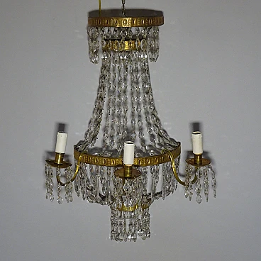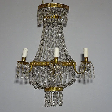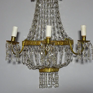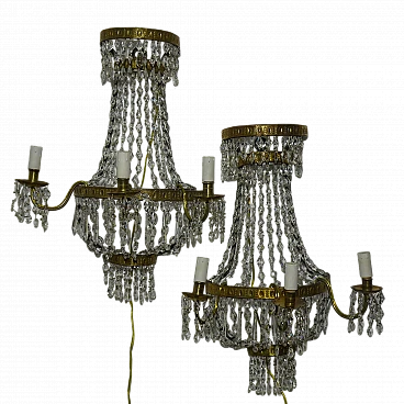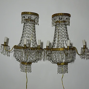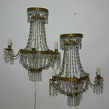 Pair of wall lights in gilded metal and crystal, 19th century 1