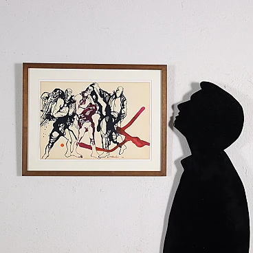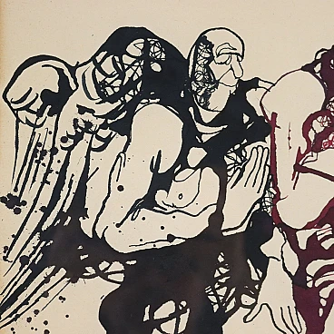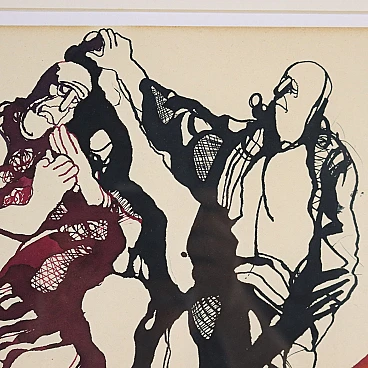 different techniques. The design proposed here is part of a series of scenes full of dramatically intertwined figures in contortions of the body, with allegorical elements and patches of often red to evoke blood. In frame.