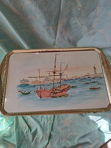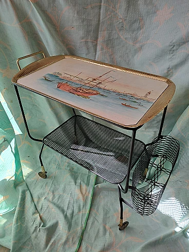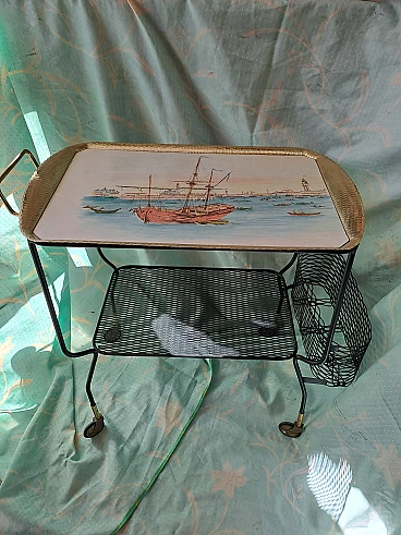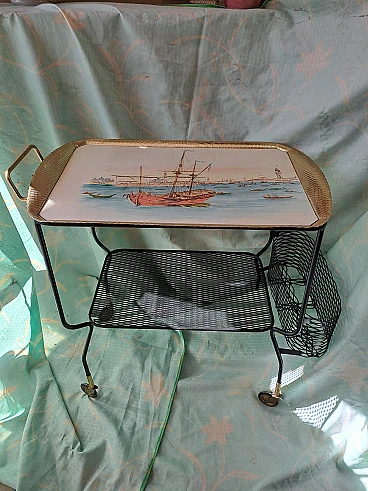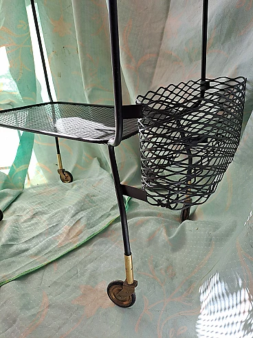 Black metal, gilded aluminum and bakelite bar cart, 1950s