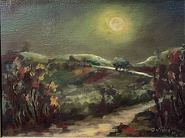 Ovidio Manetti, nocturnal rural landscape, oil painting on canvas