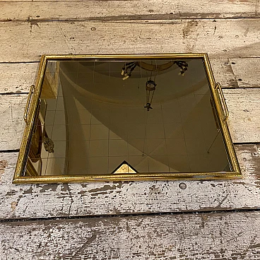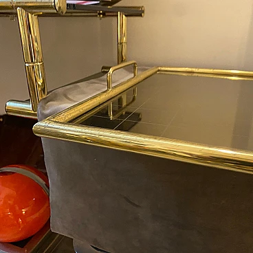 Brass and smoked glass tray in the style of Tommaso Barbi, 1970s