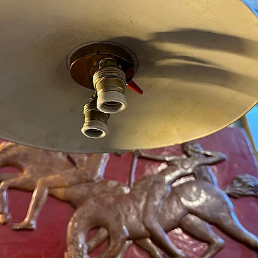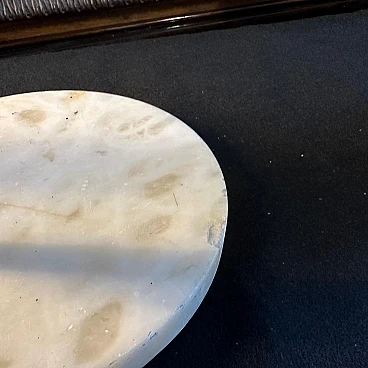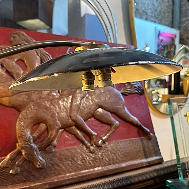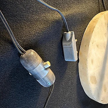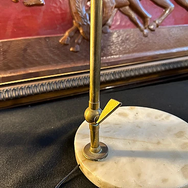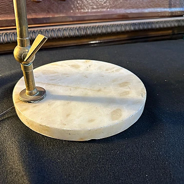 A desk lamp made of white Carrara marble, brass and aluminium, produced in Italy probably by Arredoluce in the 1950s. The lamp has a double brass joint that makes it adjustable in various positions, the marble has signs of ageing with small chips and has been repaired in the centre, the brass is in its original patina and the black painted aluminium part has some small signs of ageing visible in the photos. It is a timeless piece that perfectly blends form and function. Its elegant silhouette, quality materials and adjustable functions make it a striking addition to any mid-century modern or contemporary interior space. The lamp features a sleek and slim brass body, characteristic of mid-century modern design, with clean lines and minimal ornamentation. The brass finish exudes a warm and luxurious light, adding a touch of opulence to any workspace. At the base of the lamp, a substantial marble element provides stability and visual interest. The natural veining of the marble and its polished surface create a striking contrast to the smooth brass, enhancing the overall aesthetics of the lamp. The attribution Arredoluce indicates a connection to the esteemed Italian lighting company, known for producing innovative and high-quality designs in the mid-20th century. Although this lamp does not bear the Arredoluce trademark, its design and workmanship are reminiscent of the brand's iconic creations.